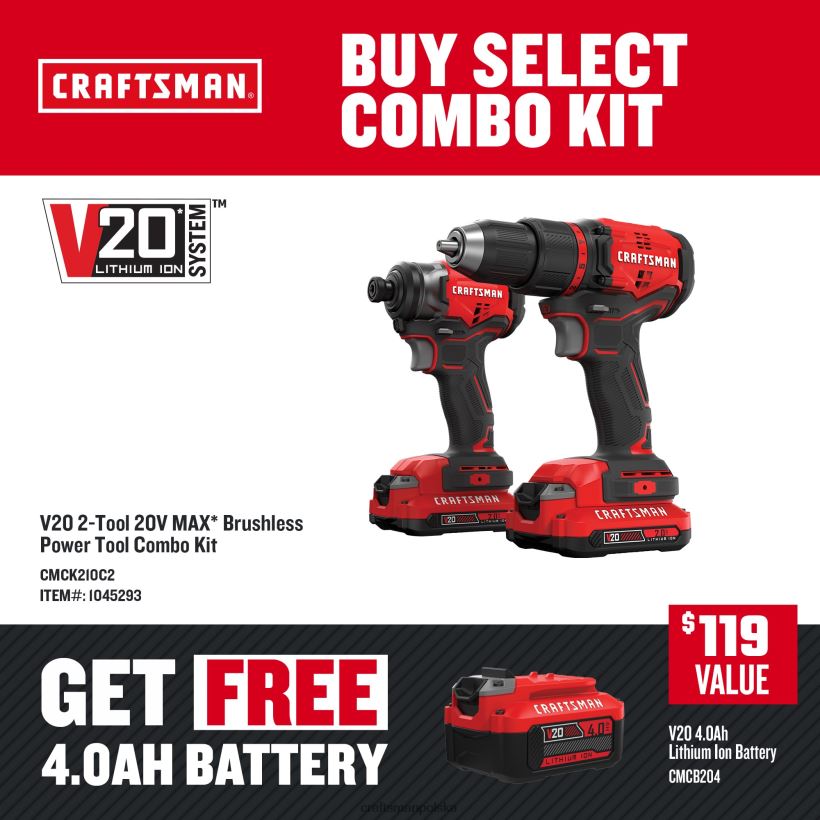 zawiera (1) wiertarko-wkrętarka cmcd710; (1) bezszczotkowy zakrętak udarowy cmcf810; (2) akumulator litowo-jonowy v20 20 V; (1) ładowarka litowo-jonowa v20 20 V; (1) torba do przechowywania